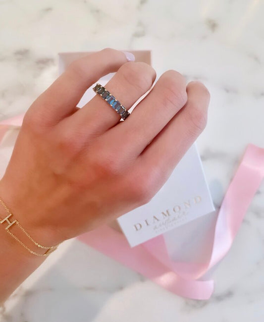 LONDON BLUE TOPAZ EMERALD CUT ETERNITY RING