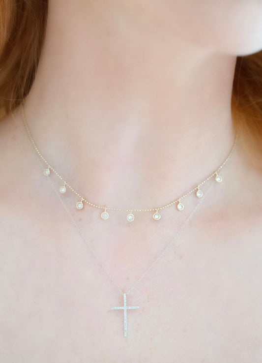 Diamond Crescent Moon Disc Necklace